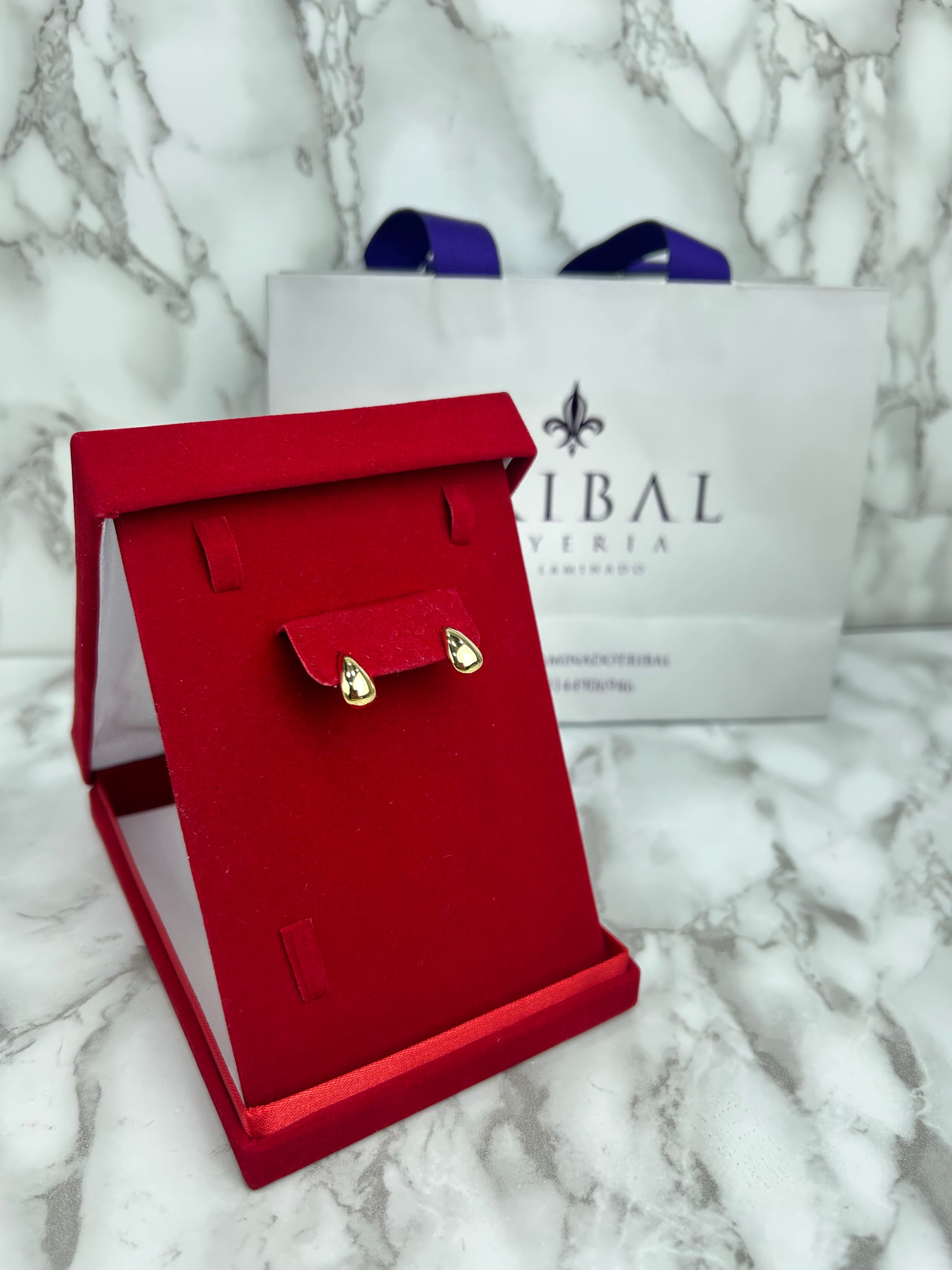 Arete tipo topo en forma de gota, con una altura de 12 milímetros y un ancho de 7 milímetros.
