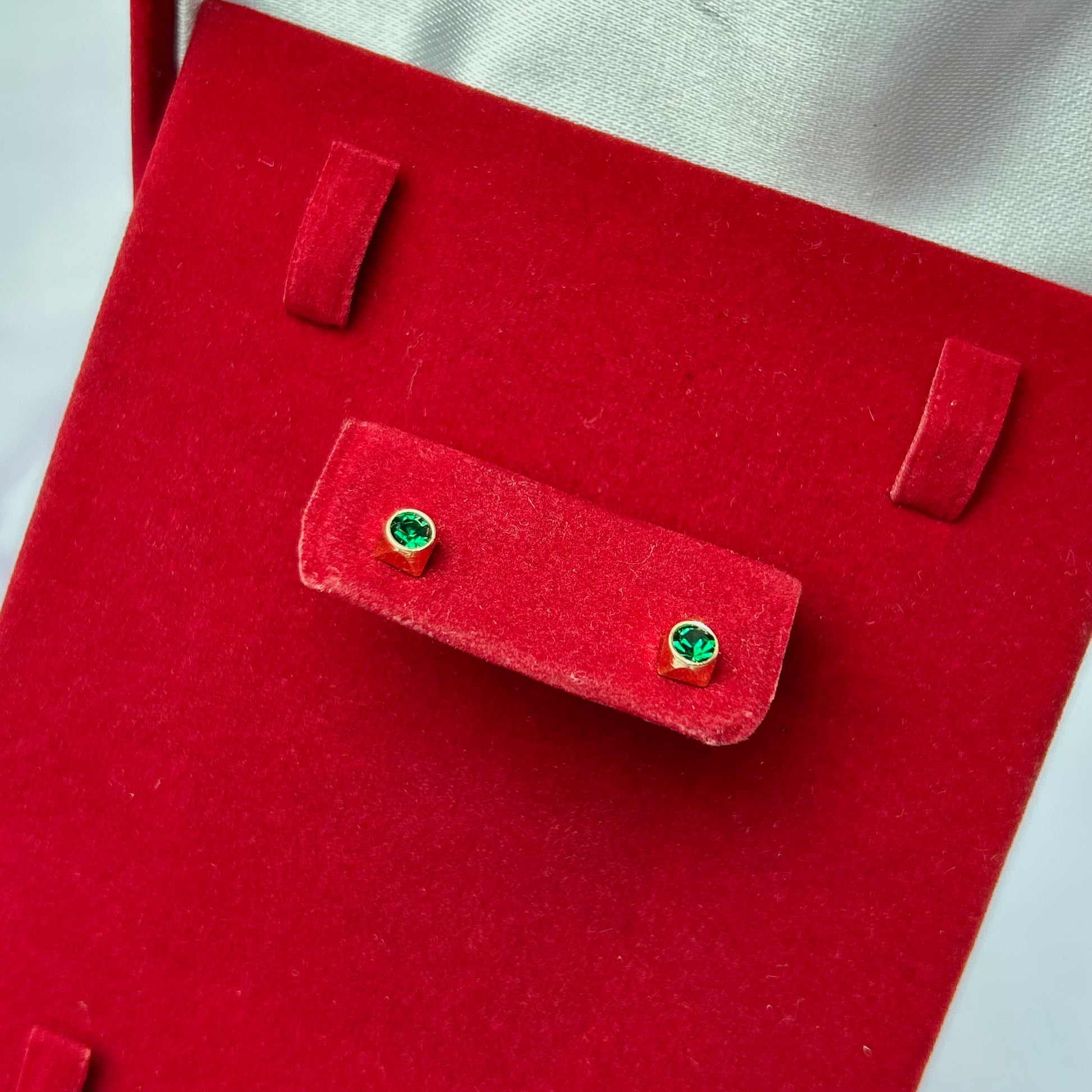 Arete Tipo Topo Circon Verde en Caja 4 mm