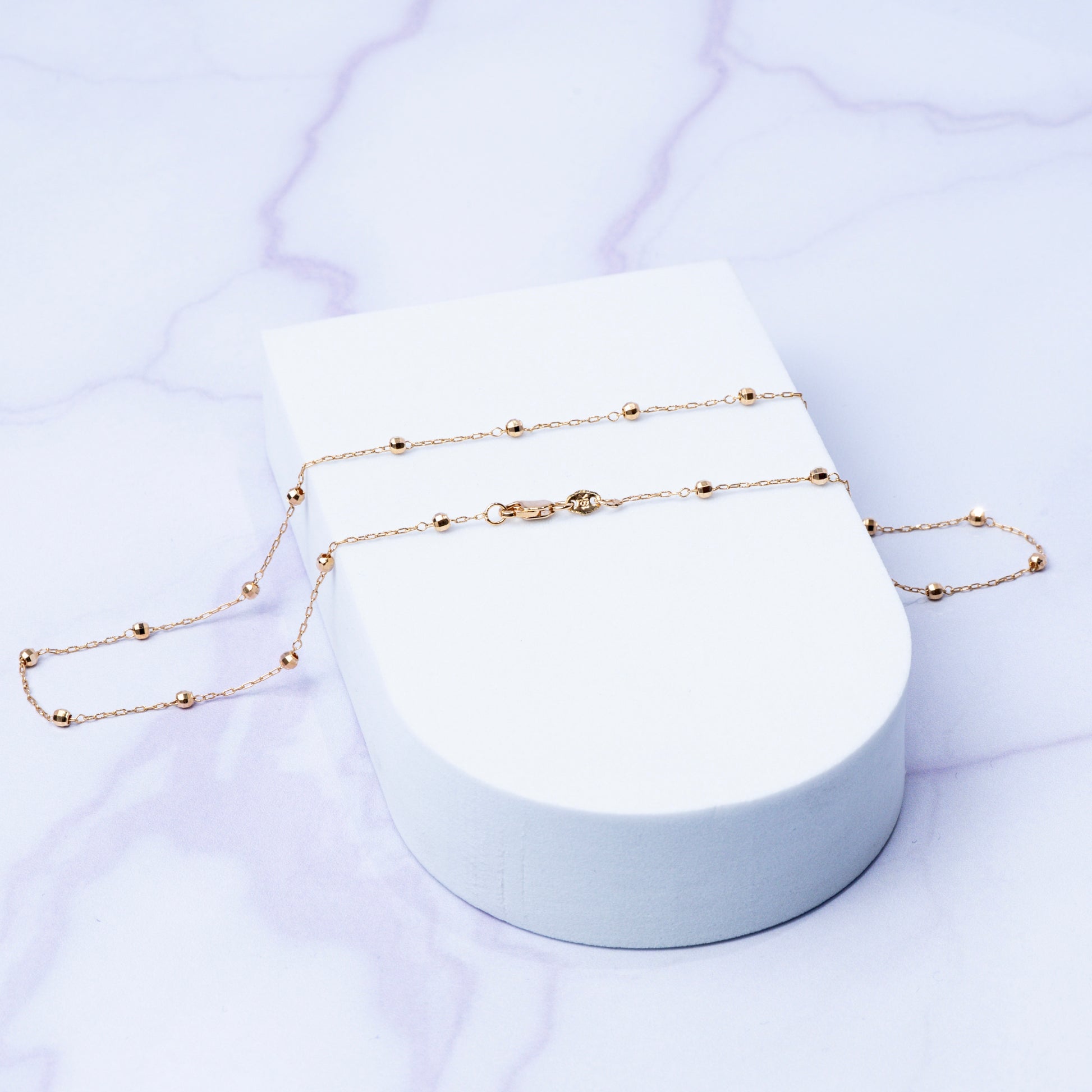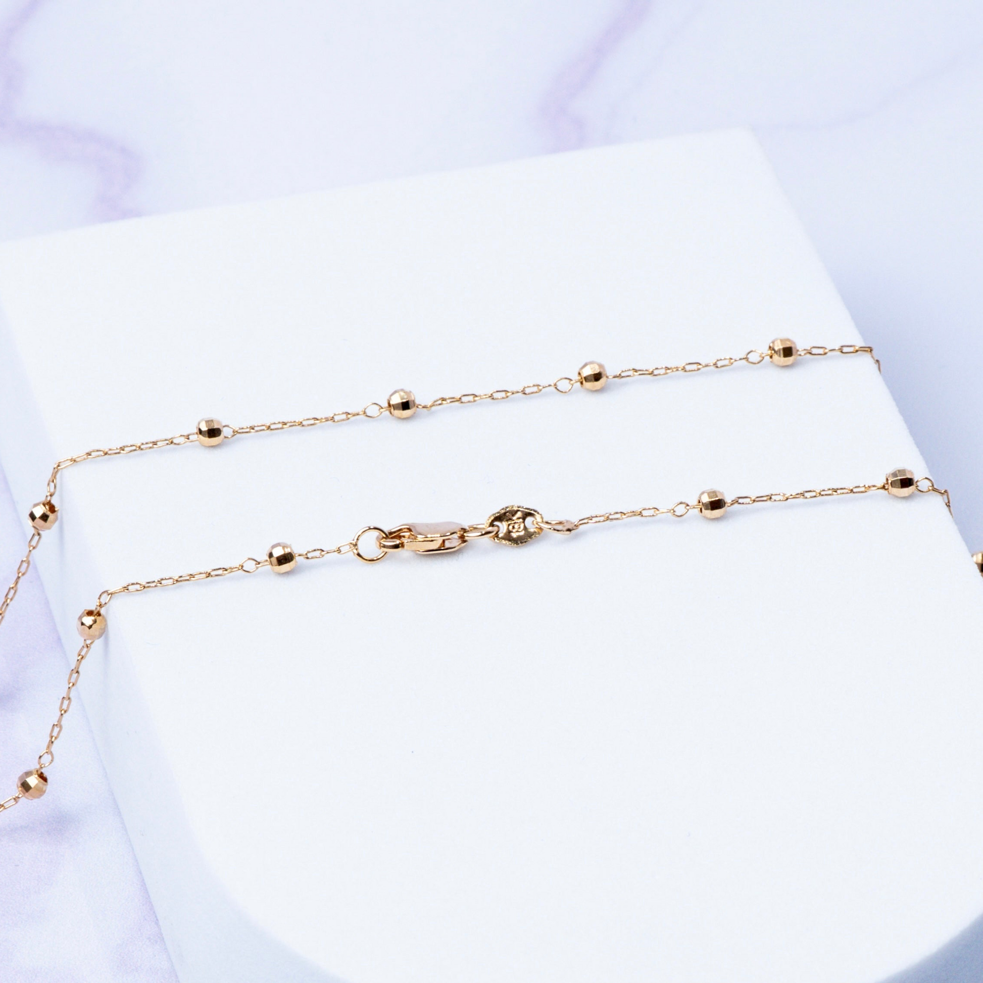 Presenta una combinación de eslabones de 1 milímetro de grosor que se intercalan con balines de 3 milímetros, para un diseño dinámico y diferenciado.