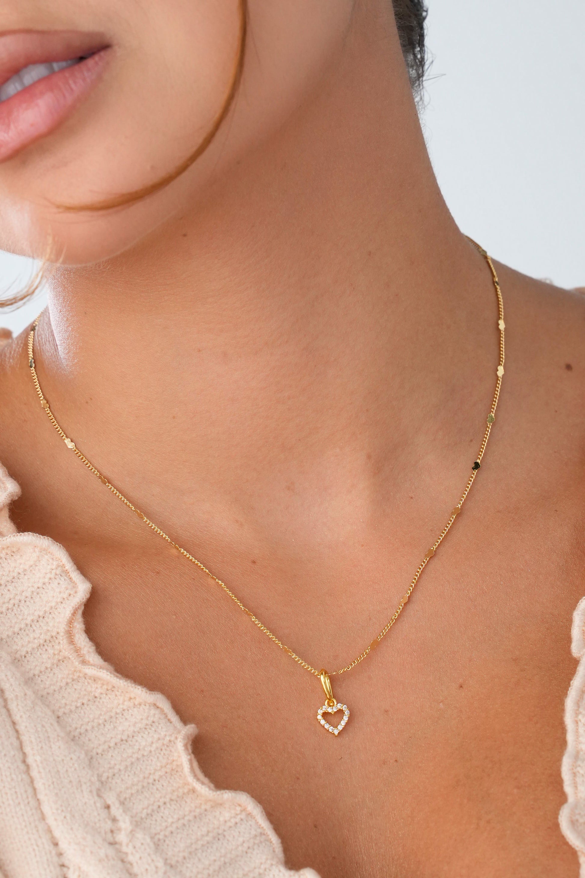 Cadena Tejido Cubana con un grueso de 1 mm, In Love corazones intercalados, con un largo de 45 cm