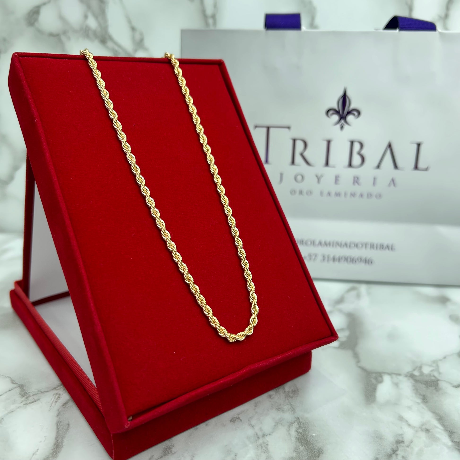 La cadena cuenta con un tejido tipo lazo.