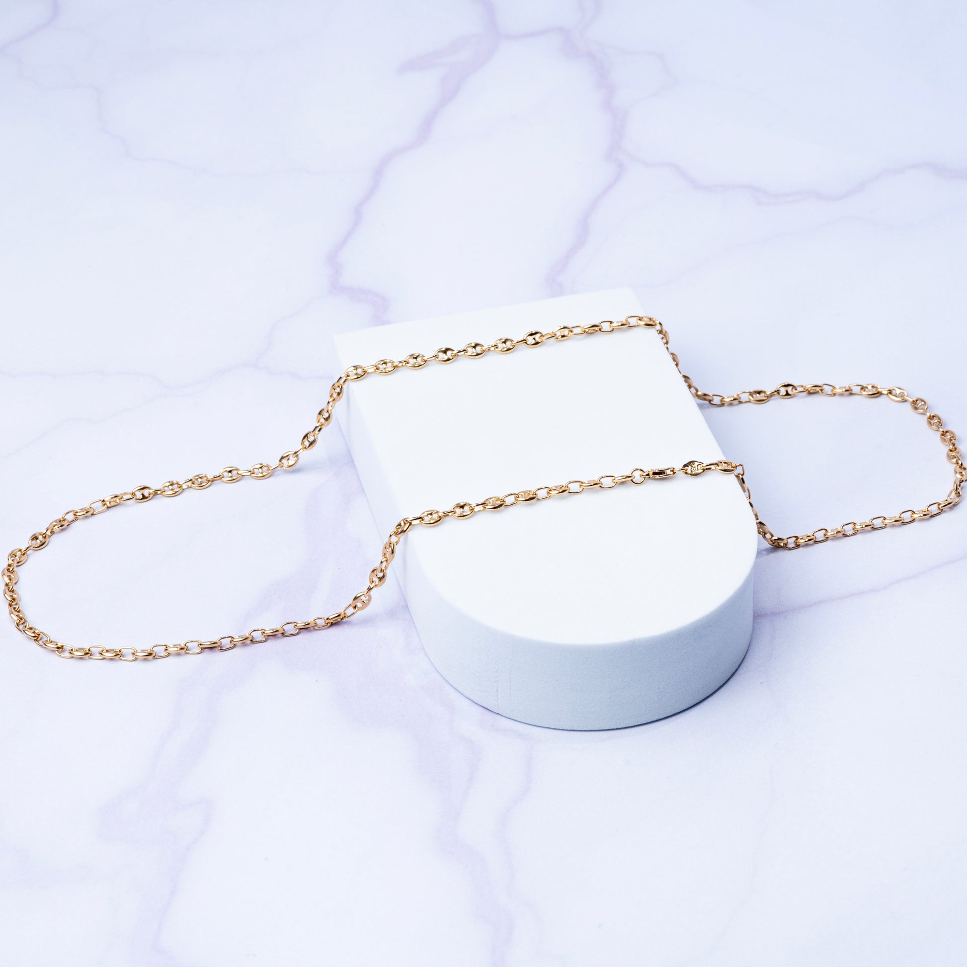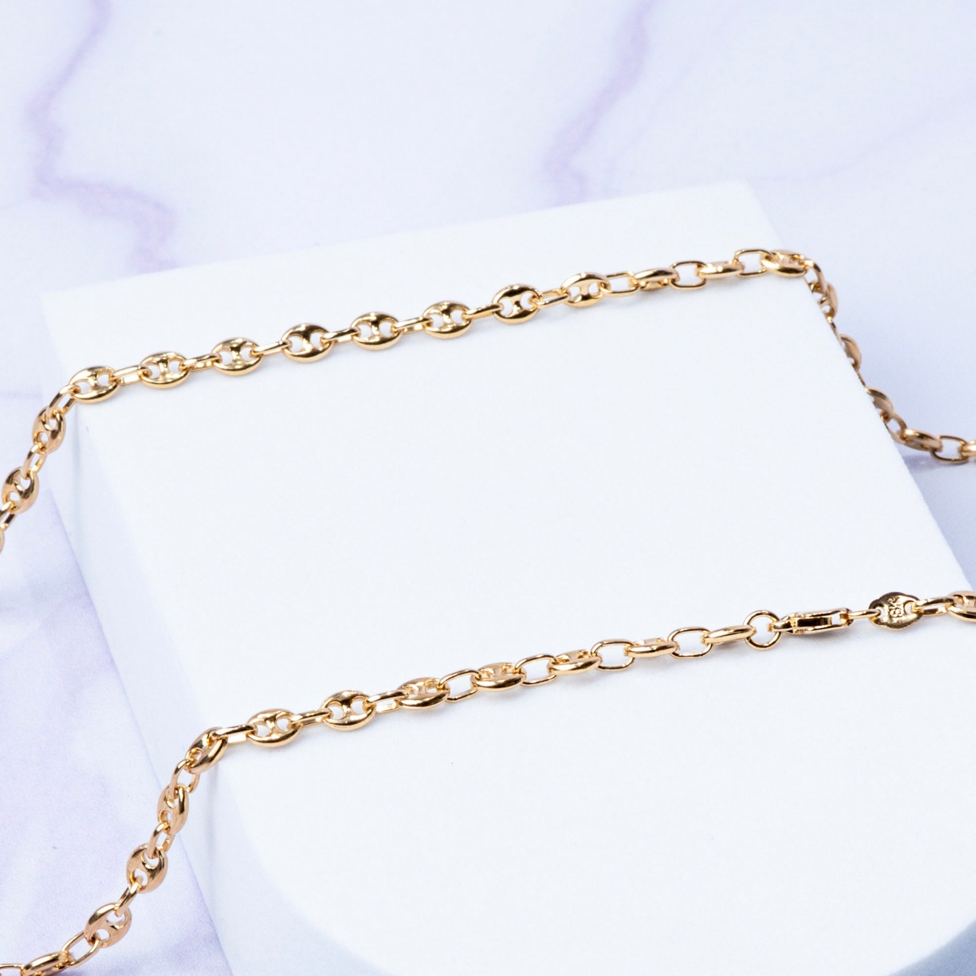 La cadena cuenta con un tejido tipo grano de café o tipo Gucci.
