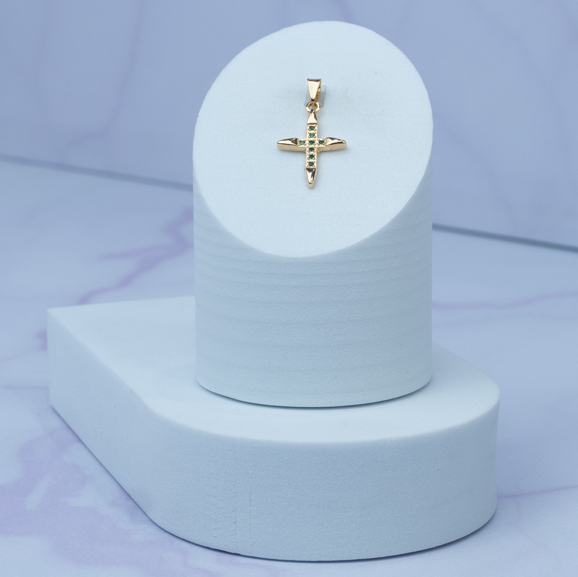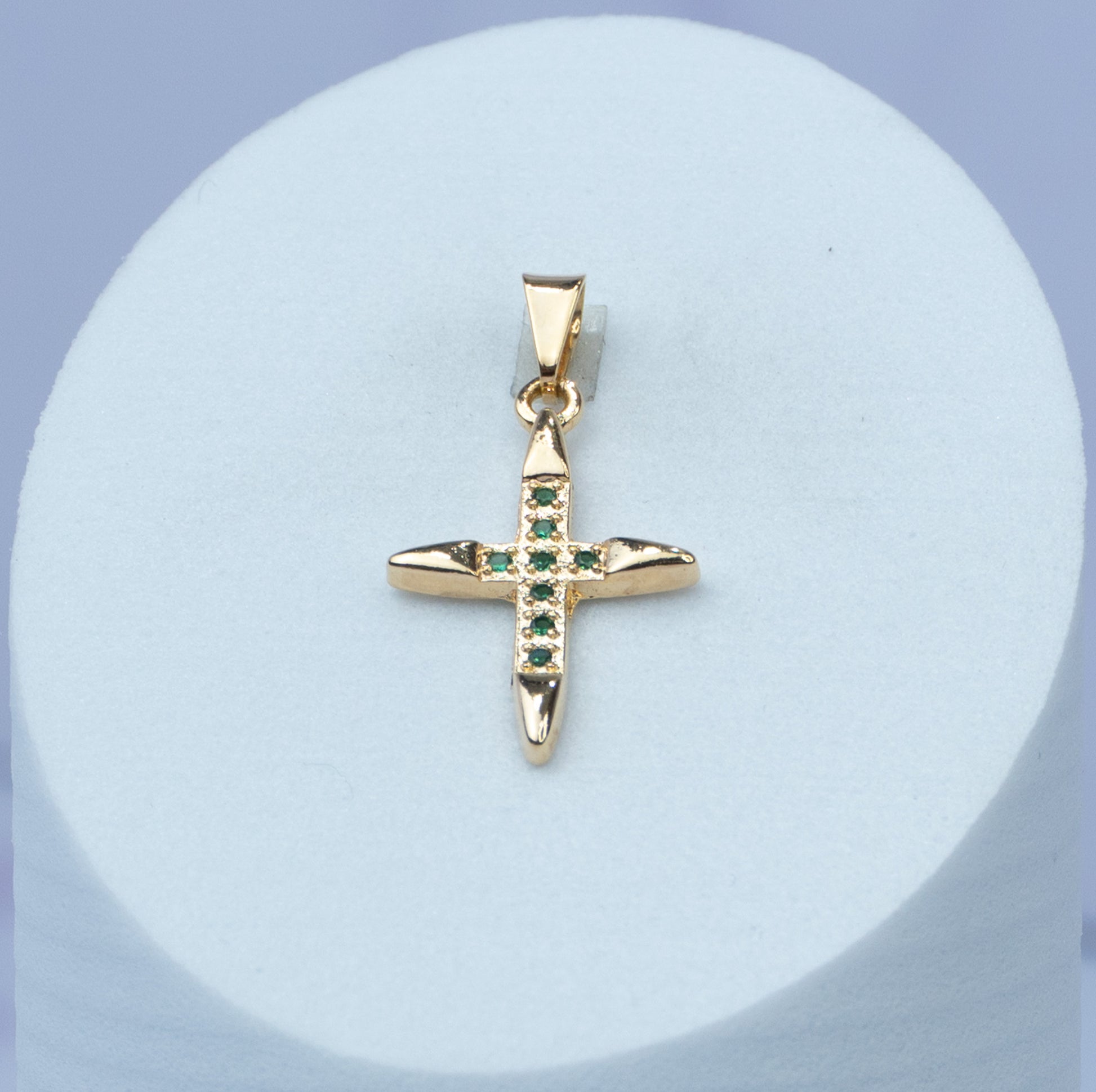 Dije Cruz En Punta/Puntos Circones Verdes con un alto de 2.8cm y un ancho de 14cm
