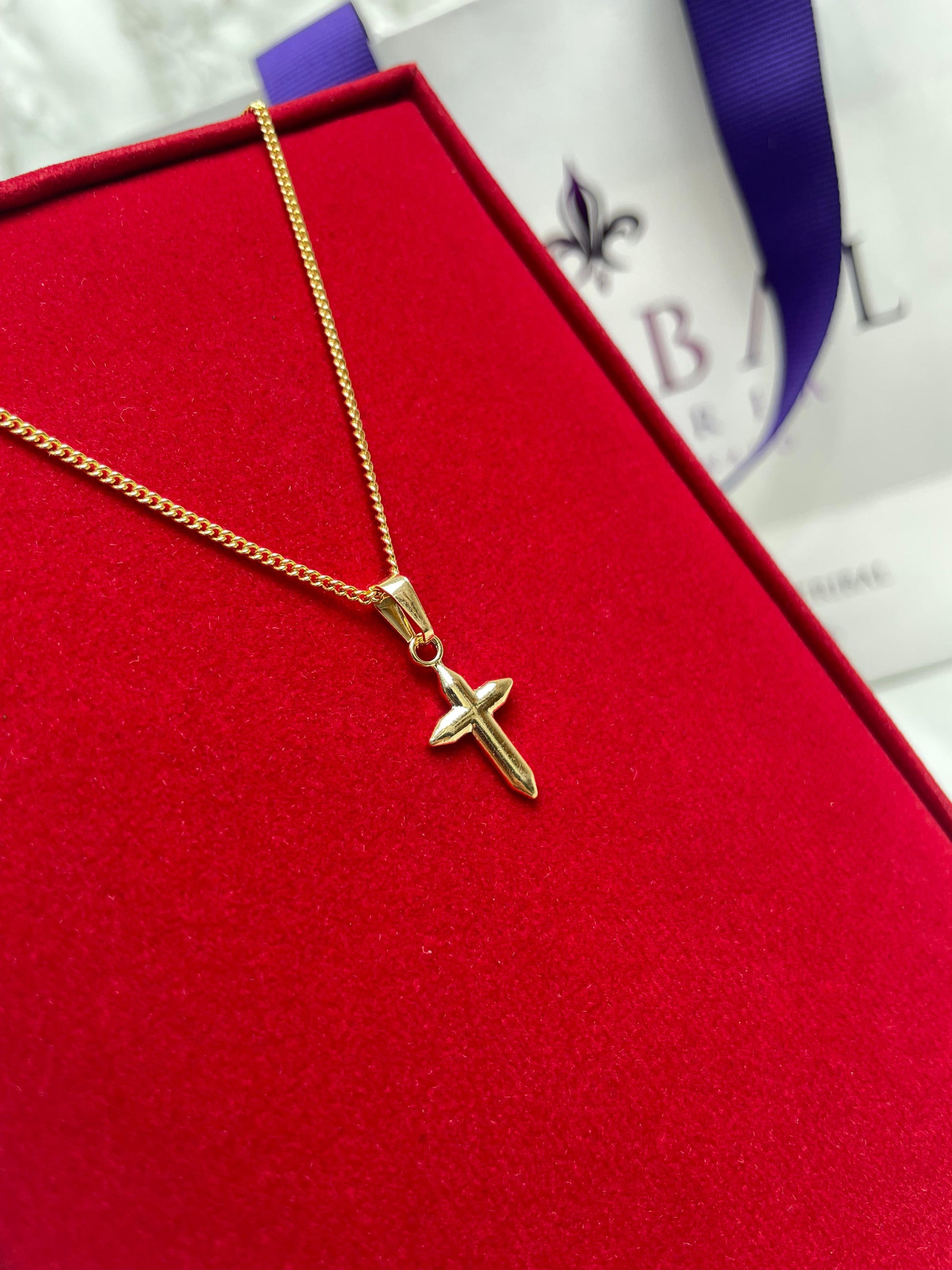 Dije Cruz Latina Punta Estaca con un alto de 1.5 cm y un ancho de 1 cm