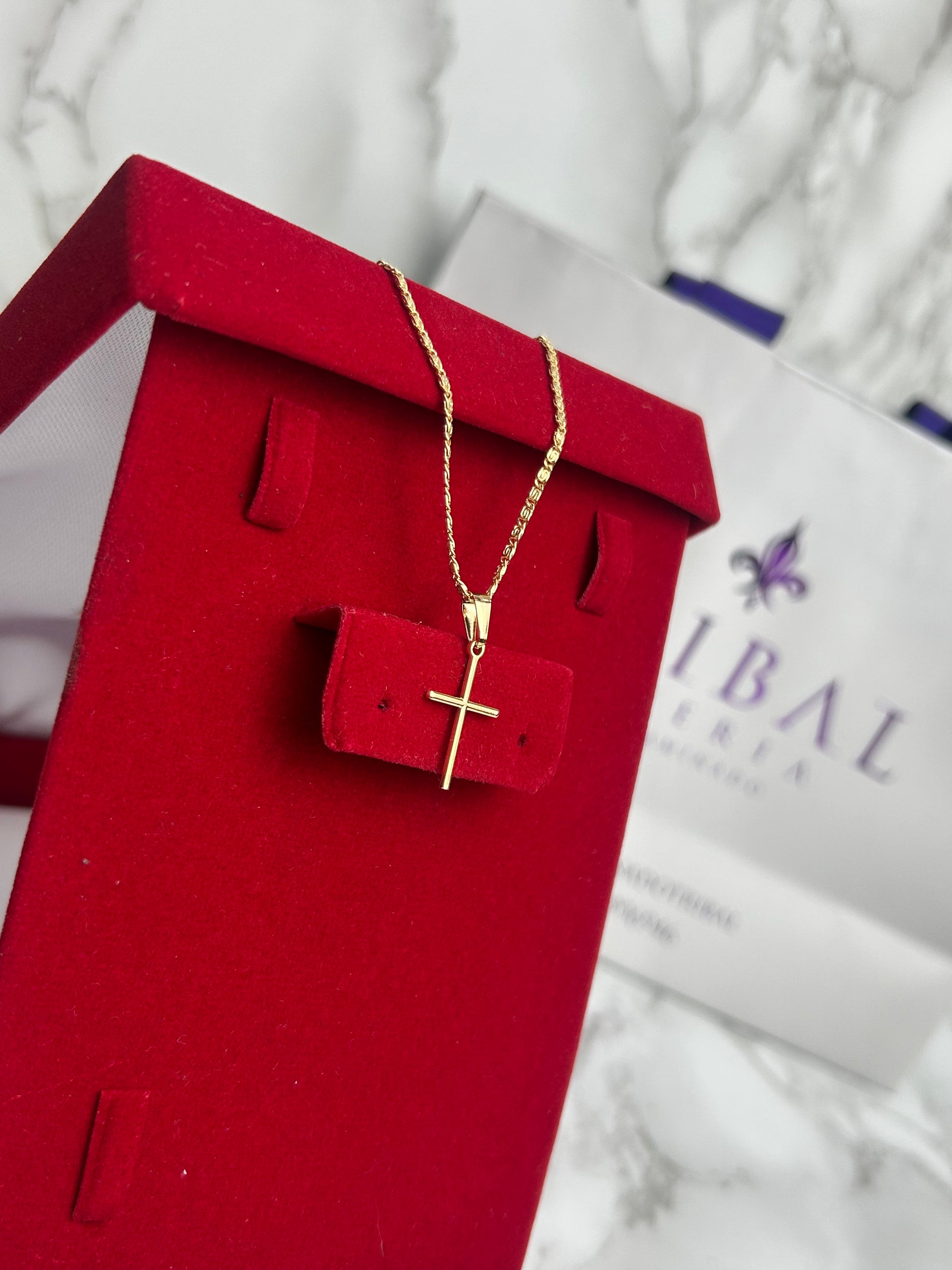 Dije Cruz Sencilla lisa mediana, con 18mm de alto y 11mm ancho