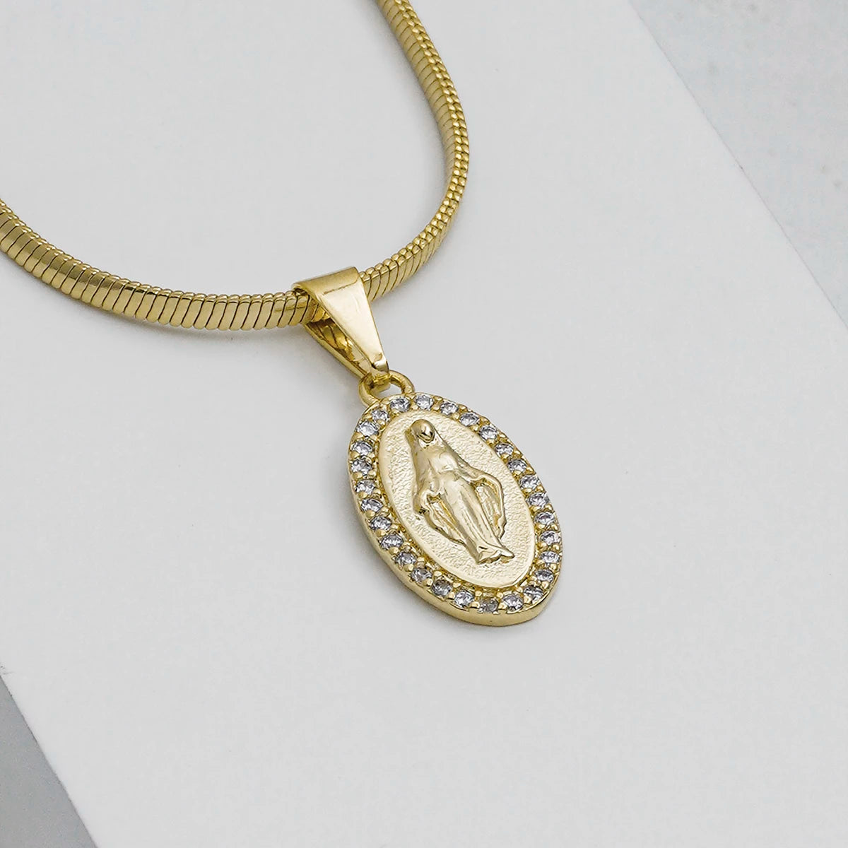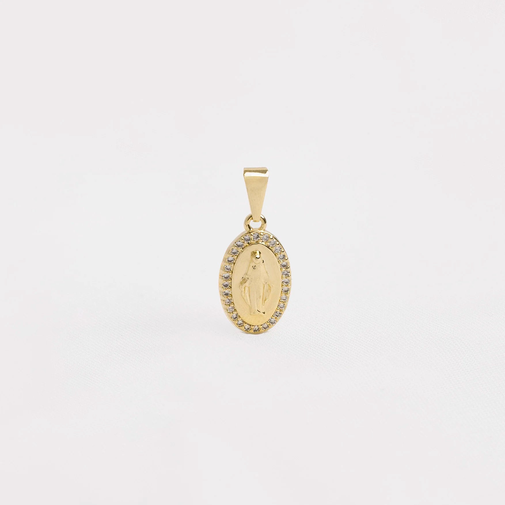 Dije Medalla Milagrosa Con Circonias Cristal, con un alto de 1.6 mm y un ancho de 1 mm
