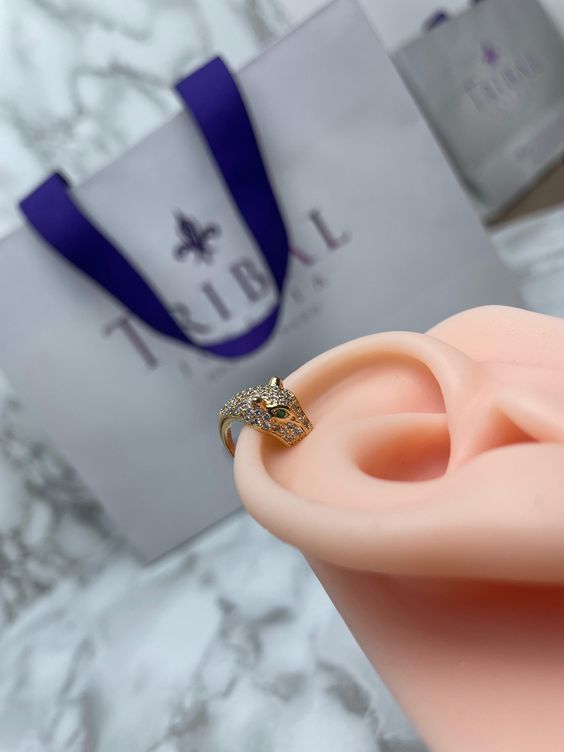 Earcuff Luxe Leopardo Circones Verde y Cristal