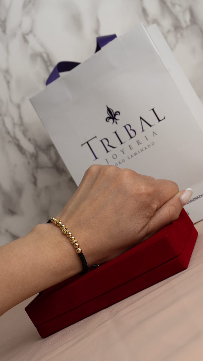 Pulsera Tejida Balin Liso 5MM, con Hrjs Rondel y Ball Circones Cristal Oro Laminado 18 k NEGRO