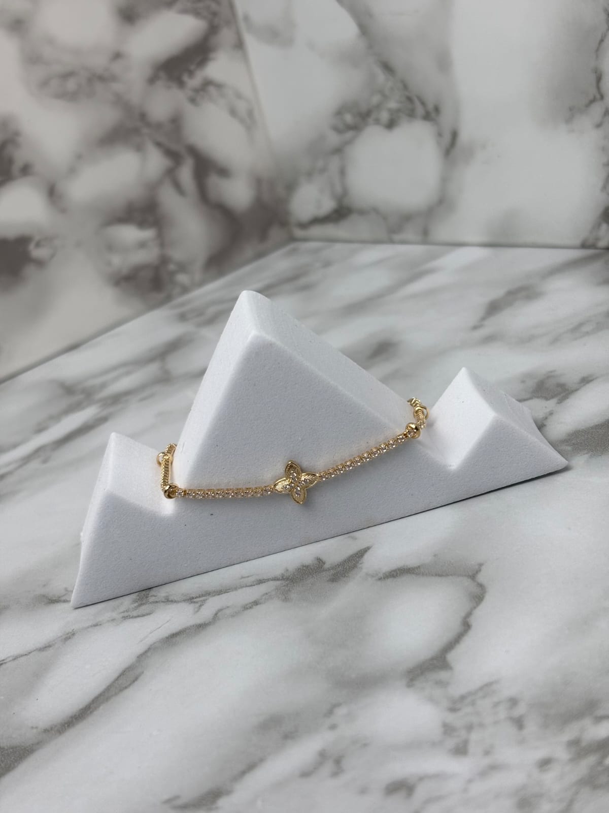 Pulsera Tipo Tennis Clásica con Aros Intercalados / Centro Flor 18 cm