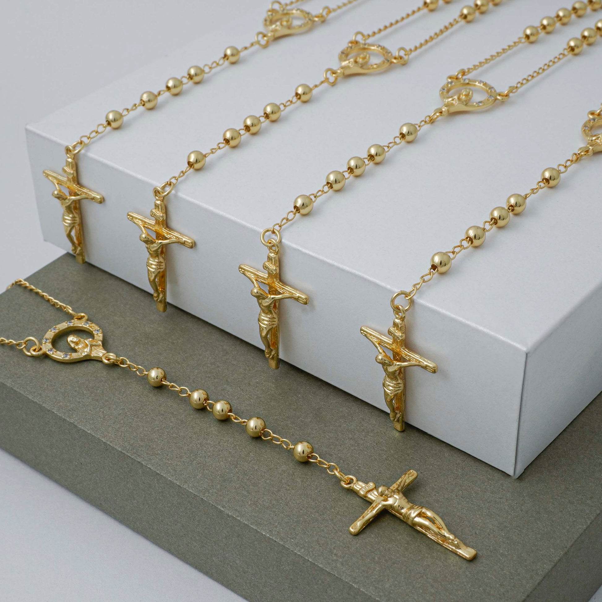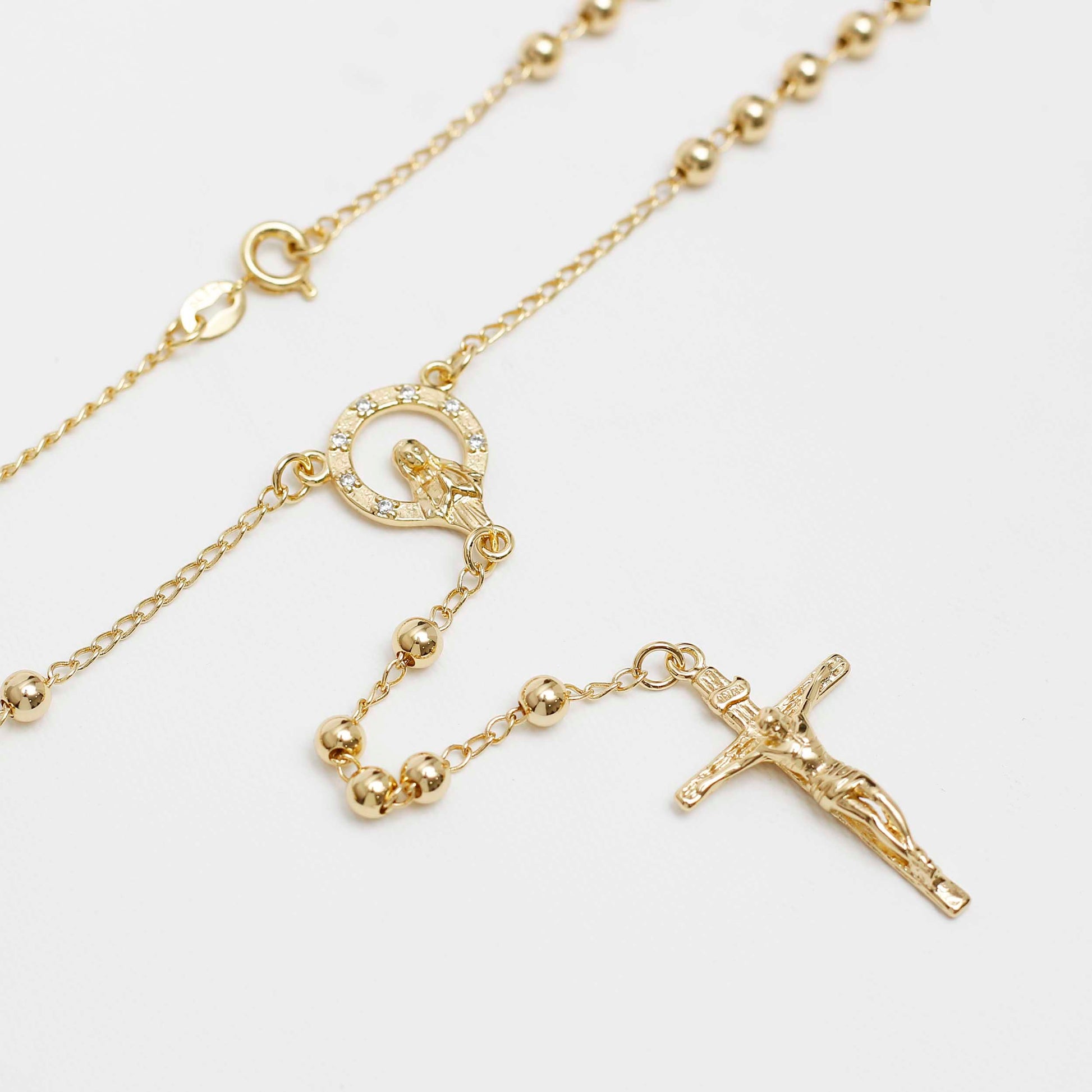 Rosario Crucero Virgen con circones Cristal, Crucifijo Remarcado Balin 3 mm 65 cm