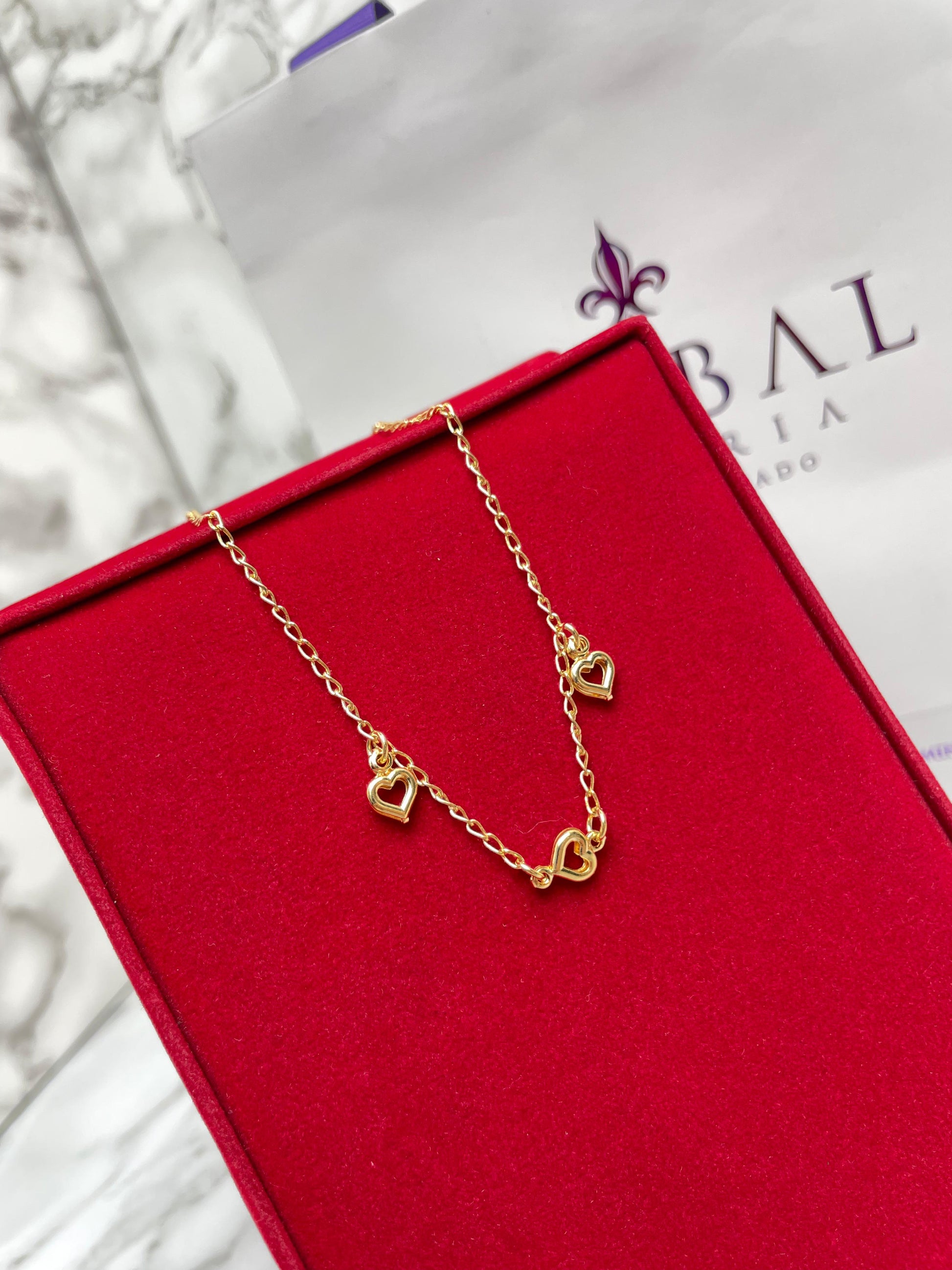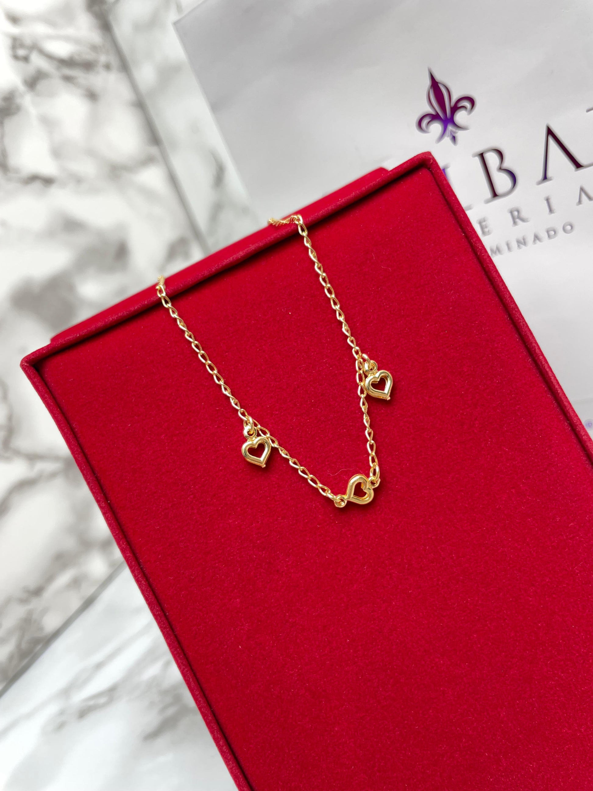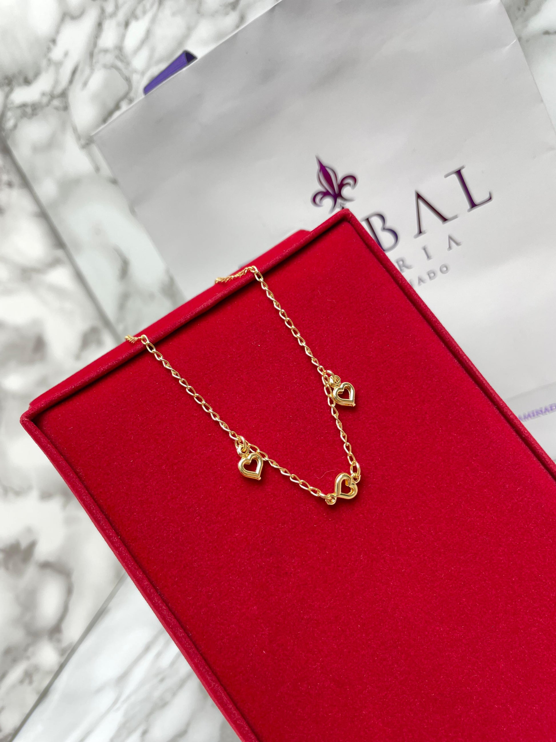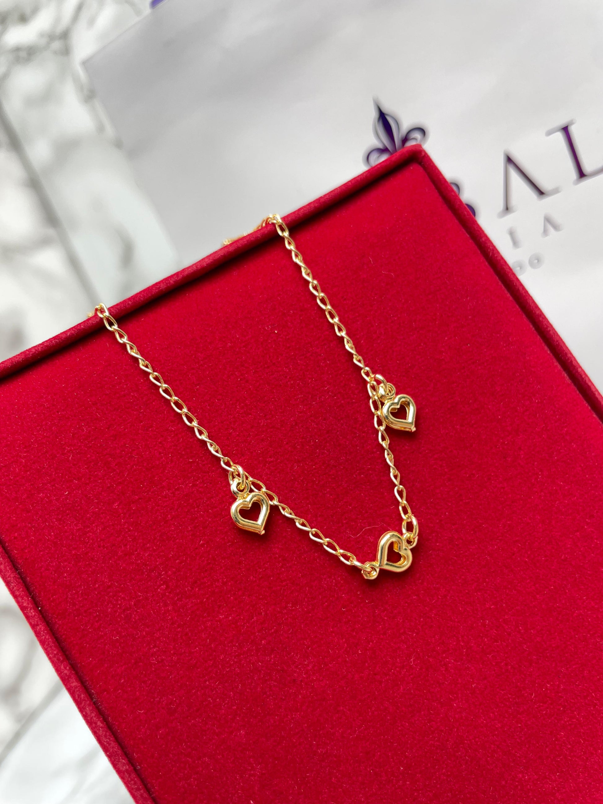 Tobillera Tejido Alterna con Dijes Silueta Corazones con un largo de 28 cm